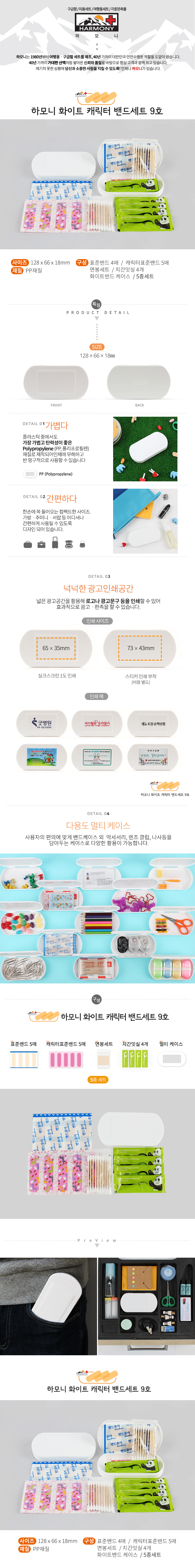 | 기타사항 | •수량 : 400EA •SIZE : 128x66x18 (mm) •스티커작업 별도 •표준밴드 4매, 캐릭터표준 5매,10p면봉, 치간잇실 4매 •1BOX : 400EA ※상품 내 모든 구성상품들은 수급상황에 따라 예고없이 변동 될 수 있습니다. |