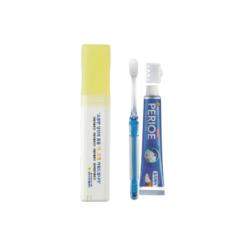 | 기타사항 | (종이케이스별도 100원) •Size : 200×40×30㎜ •페리오치약50g,국산덴탈칫솔,캡 ※구성품 교체 가능 / 칼라인쇄시 100원추가 |