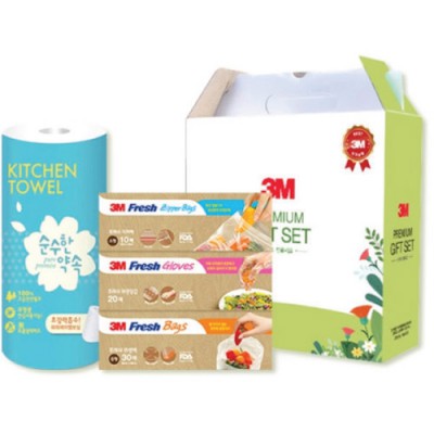 | 기타사항 | • 구성 : 3M 후레쉬 지퍼백 10매, 후레쉬 장갑 20매, 후레쉬 위생백 30매, 순수한약속 키친타올 1롤(65매) •1Box: 20EA • Size : 240x242x96mm |